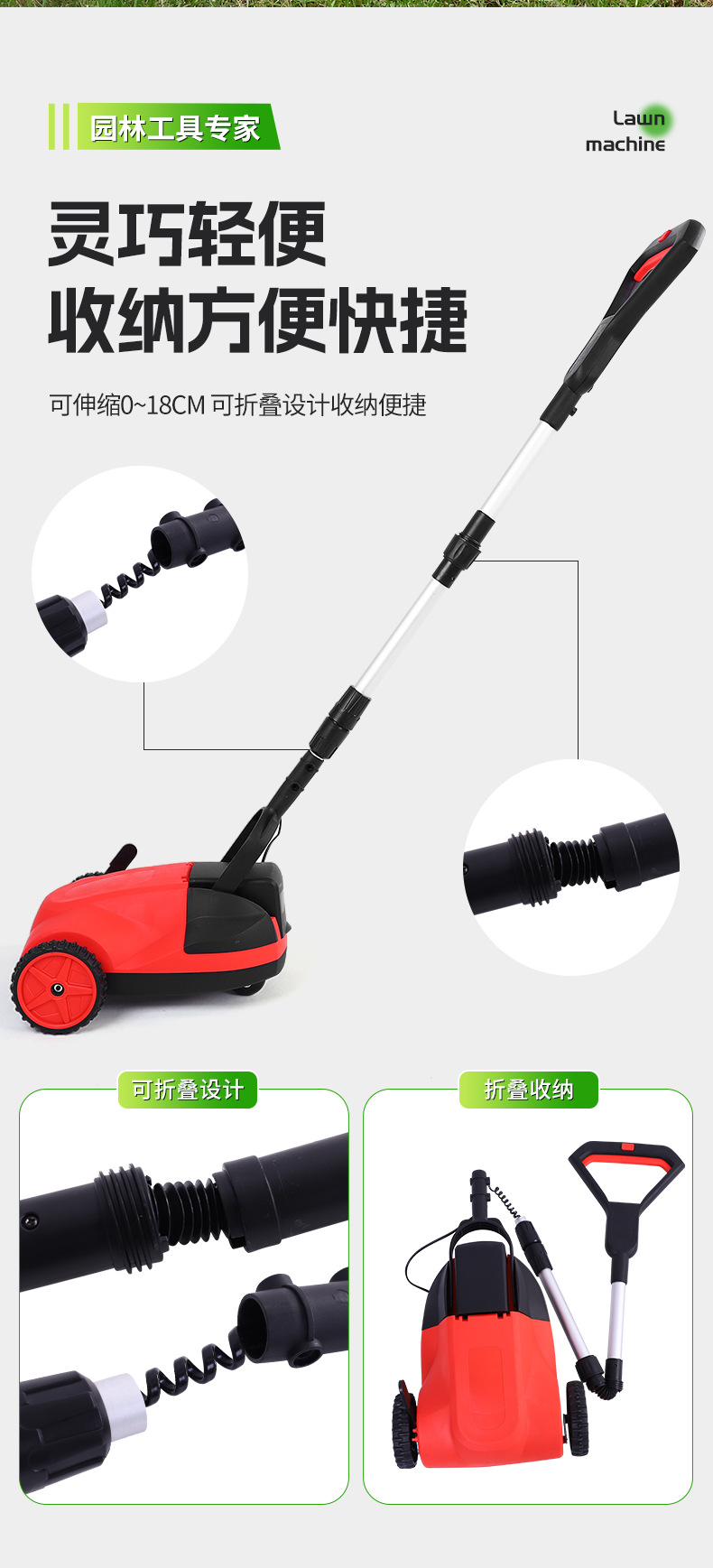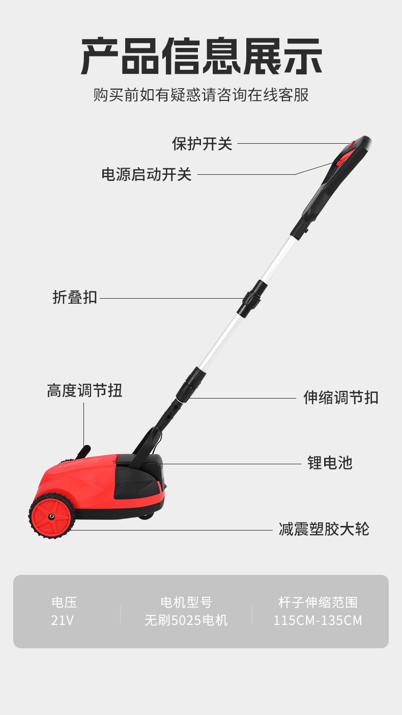 跨境手提式电动割草机家用充电草坪修剪小推车多功能可调节推车