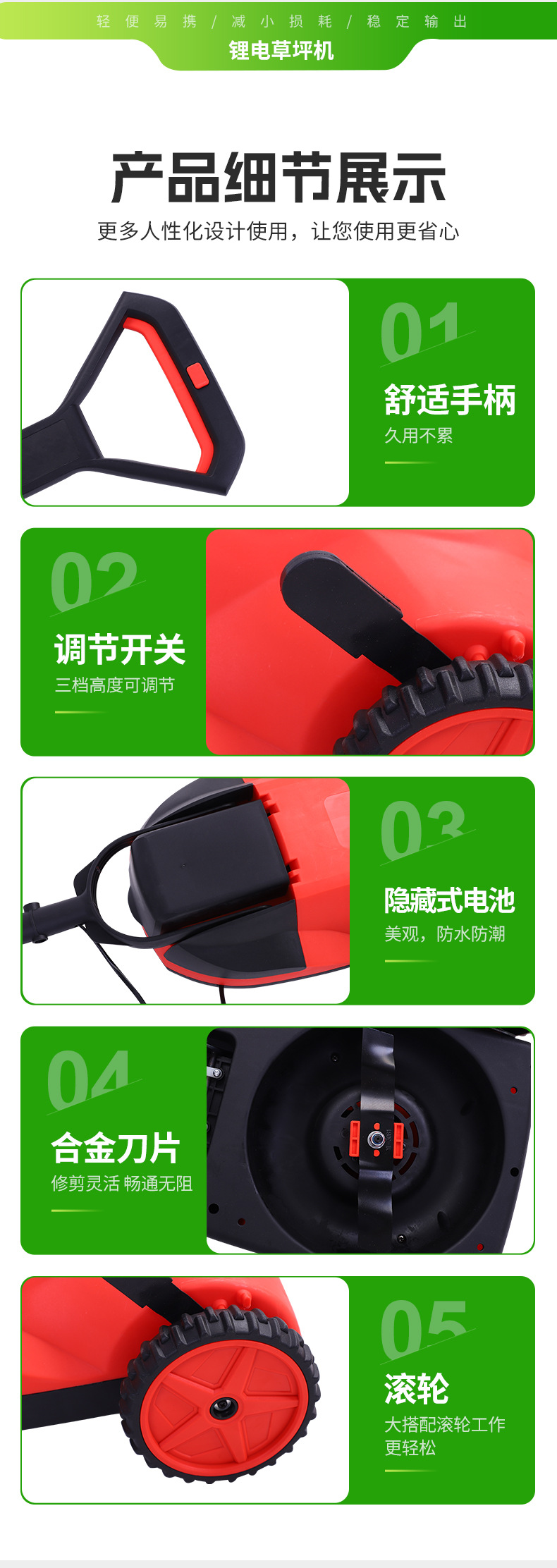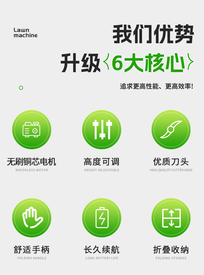 跨境手提式电动割草机家用充电草坪修剪小推车多功能可调节推车 10台