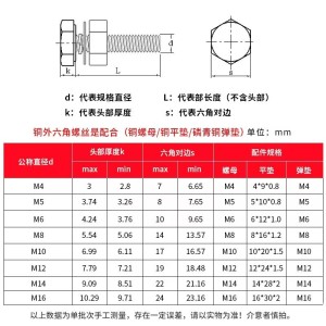 黄铜外六角螺栓套装大全铜螺丝螺母平弹垫套装外六角螺丝M5-M16