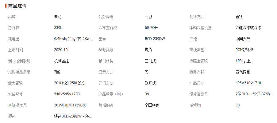 申花239升中大型办公租房宿舍家庭三门三温室中软冷冻冰箱