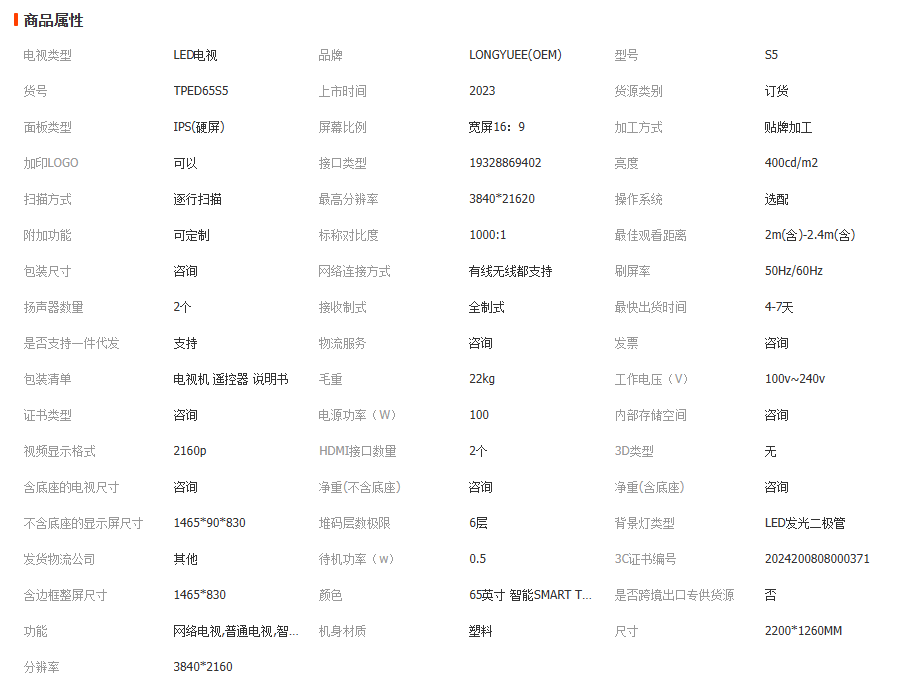 液晶电视机657585100英寸4K超清智能SMART工厂直销跨境tvIPS硬屏