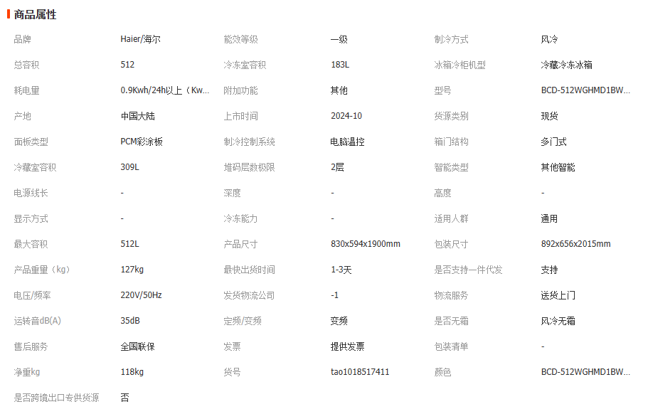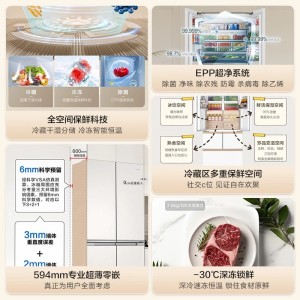 海尔麦浪512L法式多门594超薄零嵌全空间EPP家用风冷无霜一级冰箱