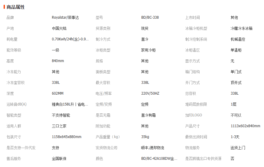 荣事达冷柜批发42-1888升单温双温家用商用小型大型速冻冷柜定制