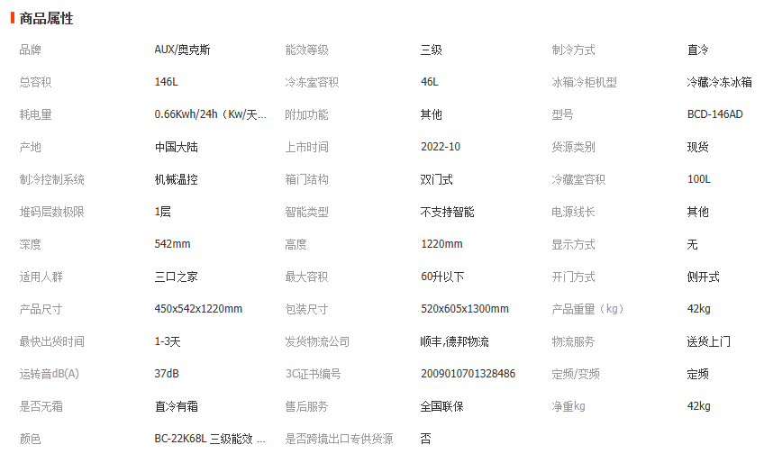 AUX奥克斯冰箱22-187升冷藏冷冻双门三门家用宿舍电冰箱支持定制