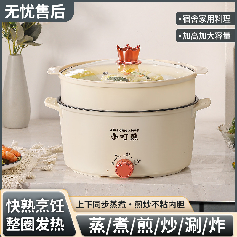 家用多功能蒸煮一体电煮锅学生宿舍电热火锅大容量蒸煮不粘电煮锅