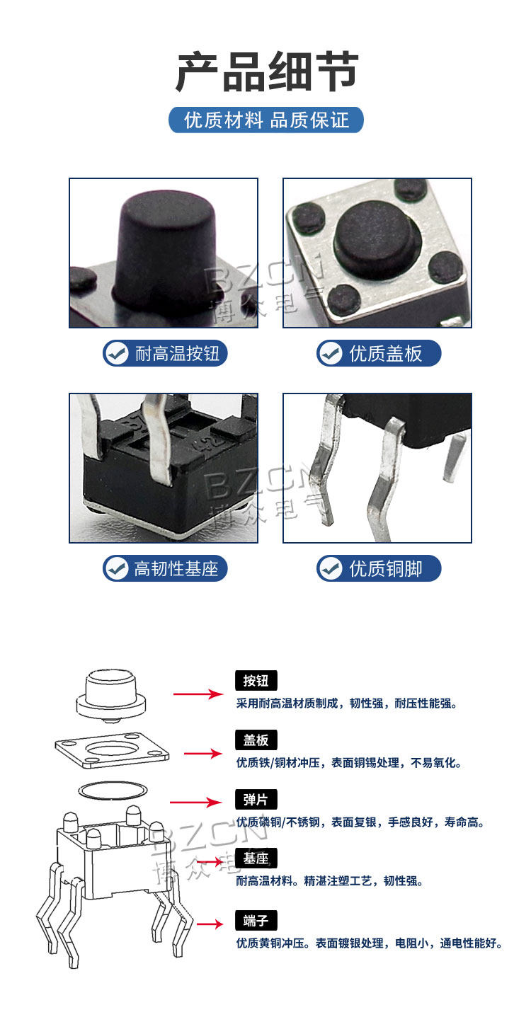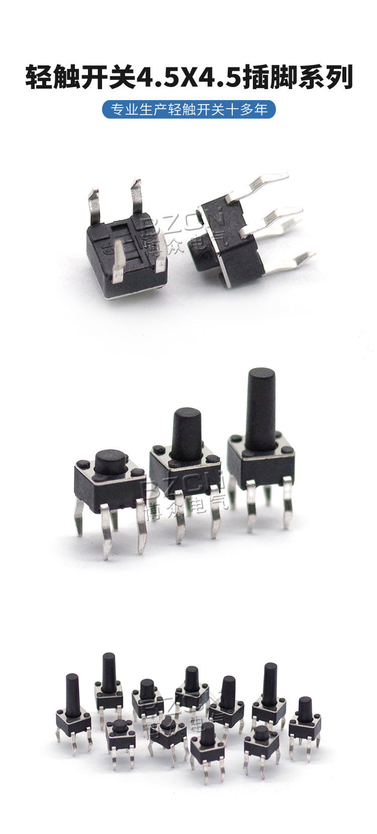 博众TS-C016 轻触开关4.5*4.5*3.5-10插脚 立式微 动按键 微型按钮 1个
