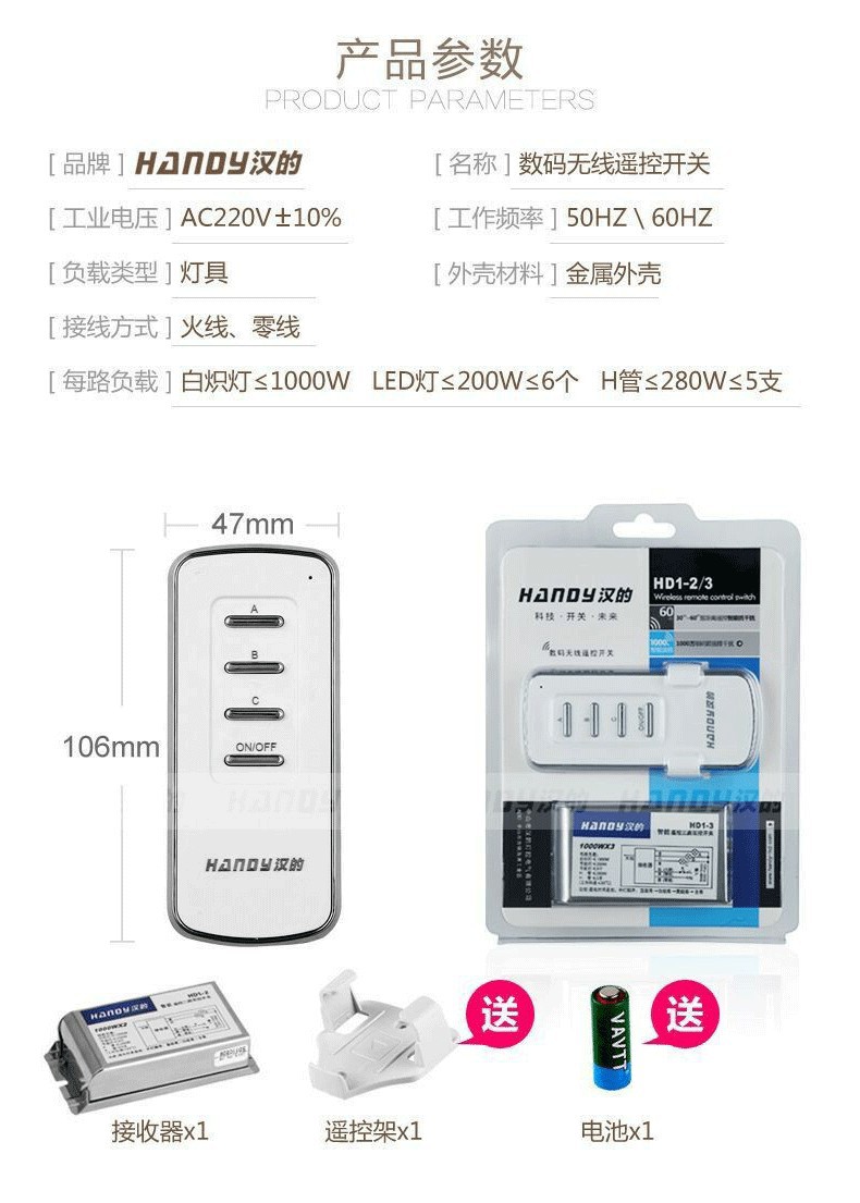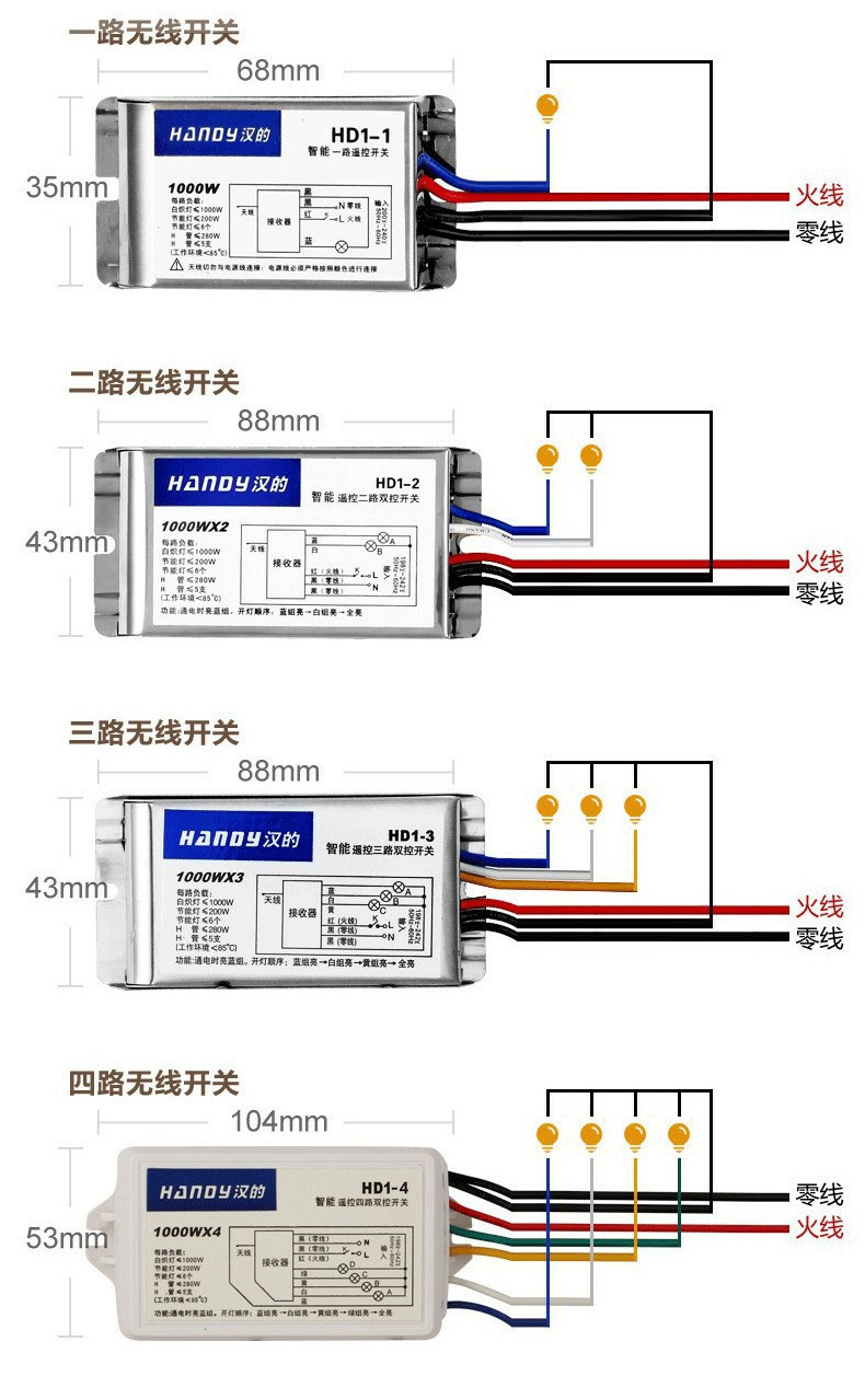 4路LED吸顶吊灯控制器电源开关灯具通用无线数码220v分段遥控开关