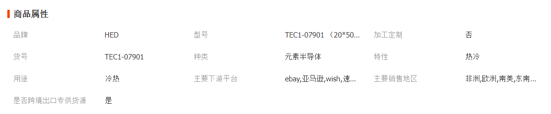 20*50mm半导体制冷片TEC1-07901、9.3V、1A美容仪手机散热致冷片