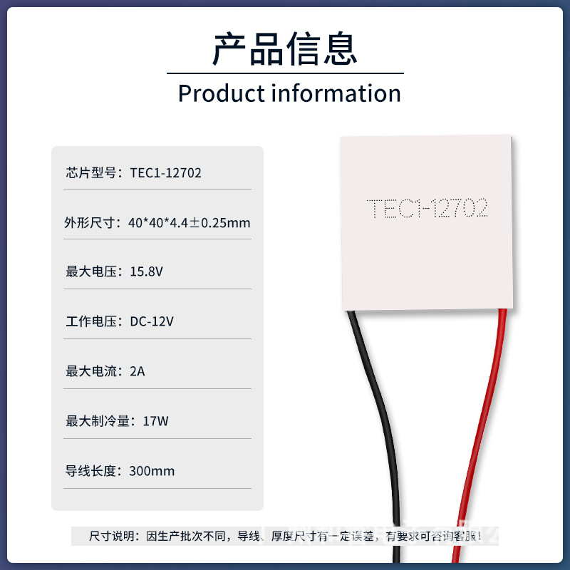 TEC1-12702 40*40mm半导体制冷片小功耗医疗设备冷敷胰岛素冷藏盒