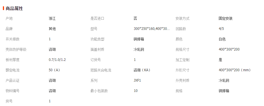 绝缘电缆铜排T接箱户外低压铜排分支箱室内明装楼层转换接线端箱 1台
