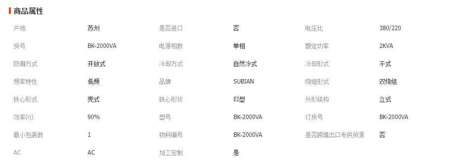 2KVA苏州苏变低频单相隔离控制变压器BK2000VA380V/220V工频