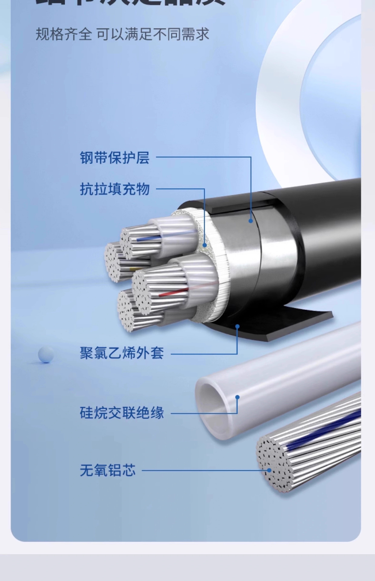 国标纯铝芯YJLV/VLV22架空1/2/3/4/5芯10平方地埋铠装电力电缆线