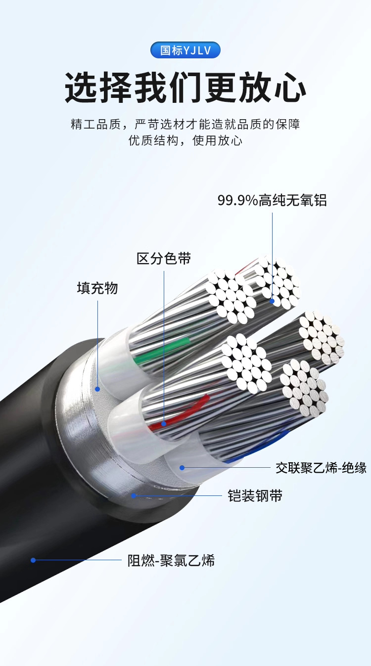 铝芯电缆线4芯16 25 35 50平方YJLV国标铝线三相四线架空地埋电缆
