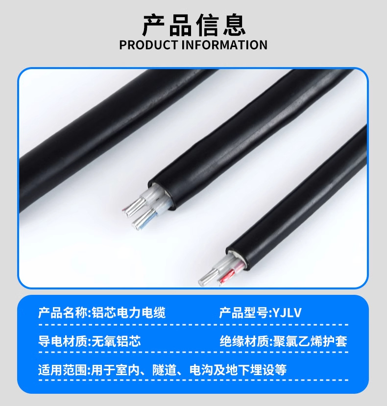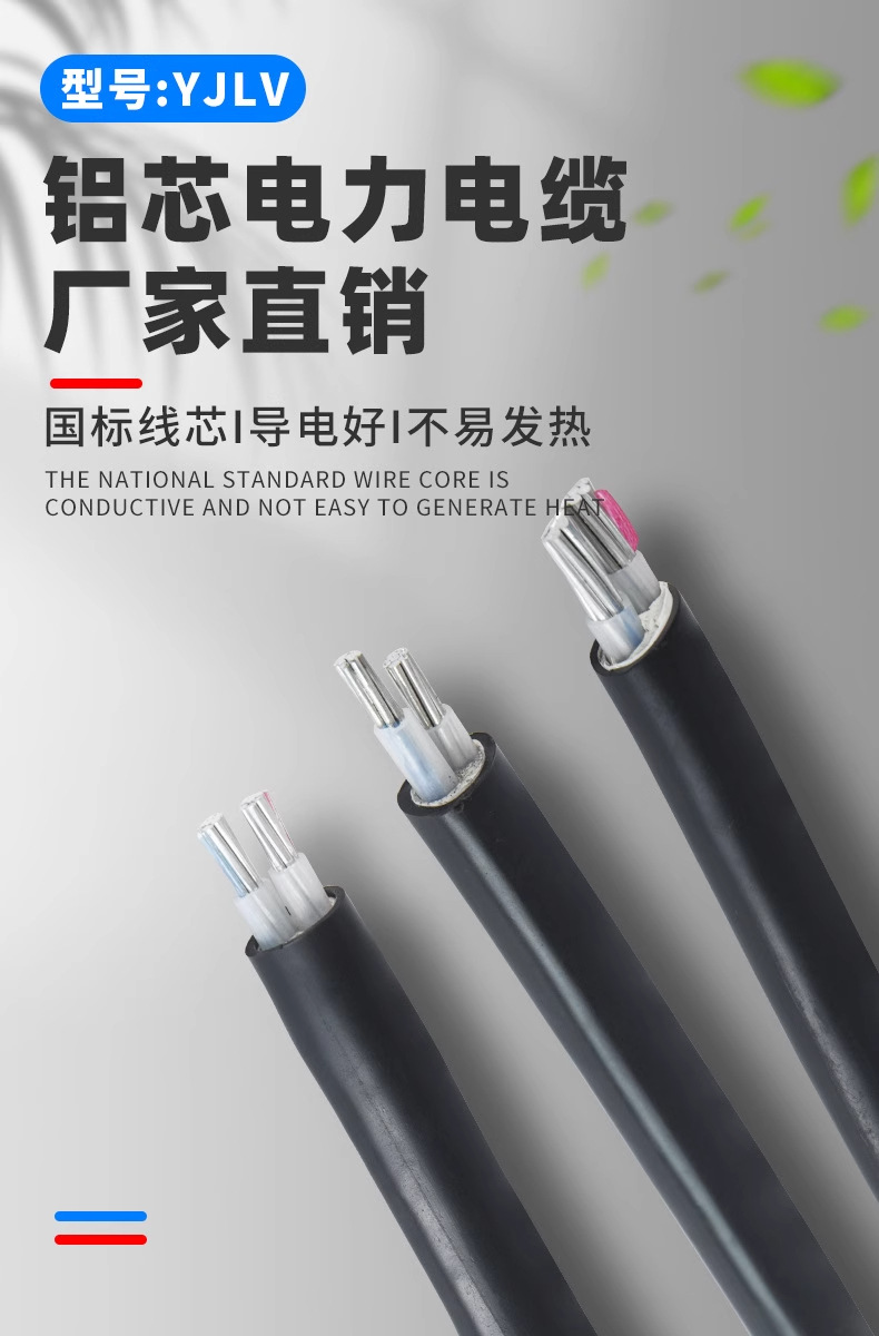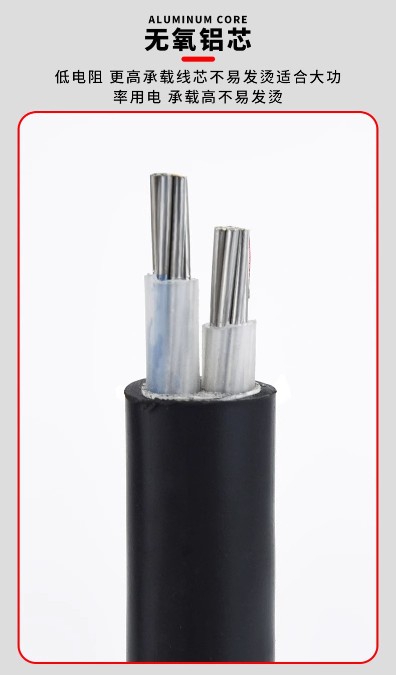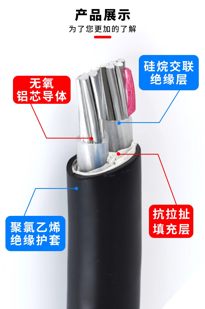 国标铝芯电缆线4/5芯16 25 35 50 70 95平方地埋线三相四线铝电缆 2米