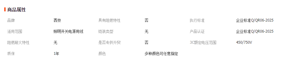 西京牌 XJRV-B 10-50mm2 铜芯绝缘软电缆 1米