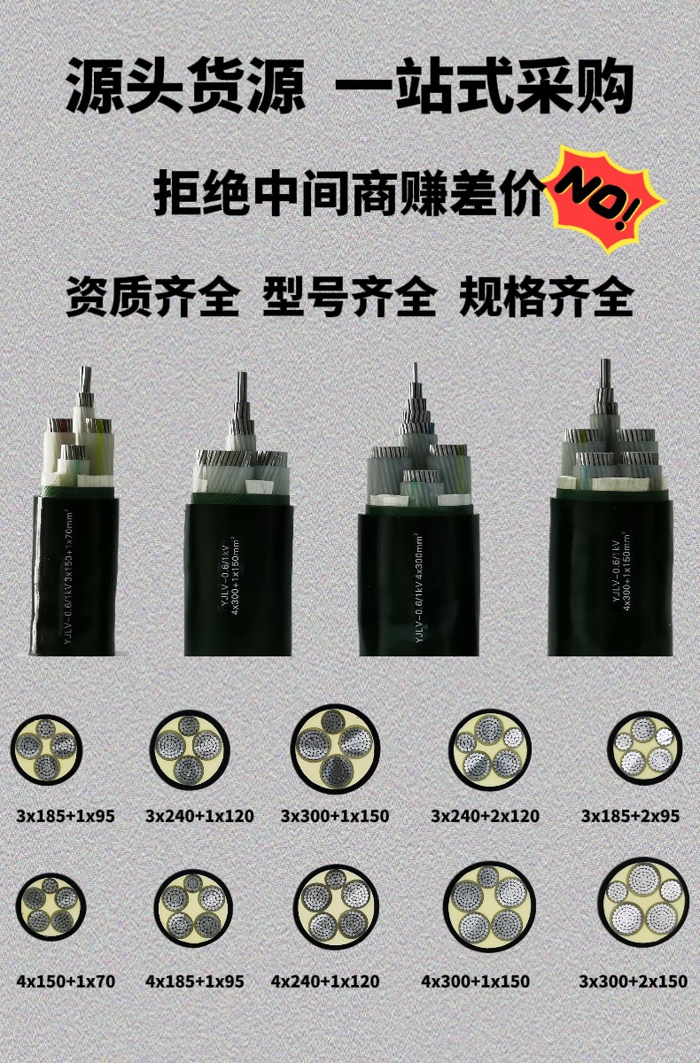 YJLV国标铝芯电力电缆2/3/4/5/3+1/3+2芯50 70 95 150 18