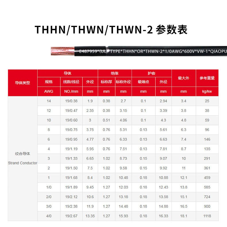 工厂直供 16AWG 美标THHN铜芯绝缘 尼龙护套线
