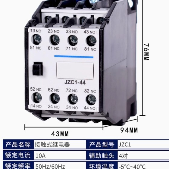 接触式中间继电器JZC1-44 31 22 53 62Z DC24V JZ7 220 V 380V 24V 10个