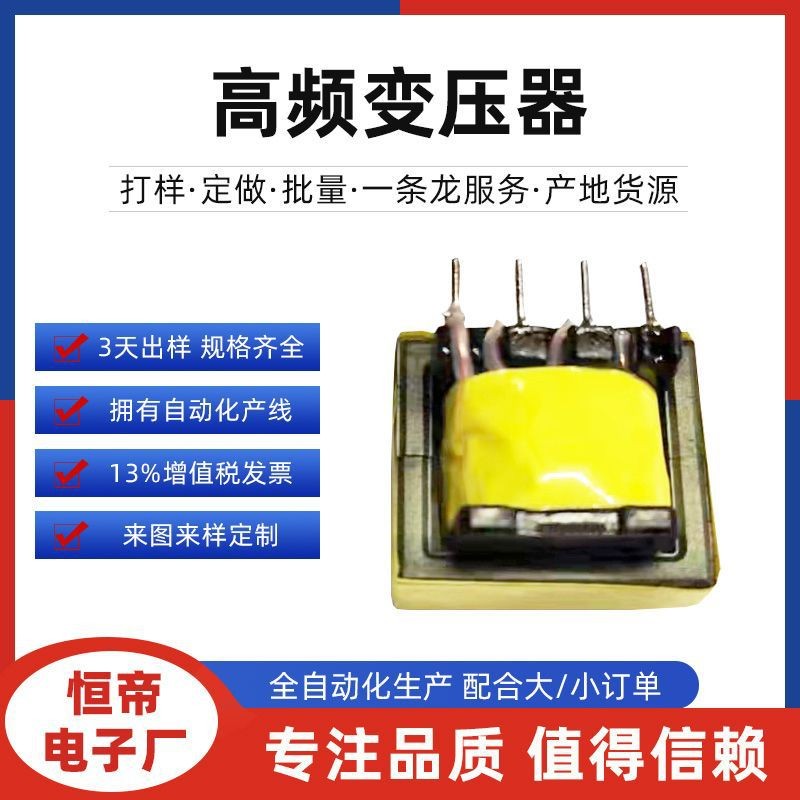 恒帝电子厂是一家专业生产加工销售的变压器厂家,公司成立2008年,是一家集研发;生产;销售为一体的诚信企业;专业生产高频变压器;环形变压器、整流器、电源适配器、开关电源变压器厂家、具有独立的法人资格、日产高频变压器,电感变压器10只。