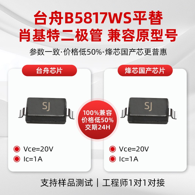 台州替代B5817WS肖特基二极管20V 1A SOD-323贴片品牌平替高频
