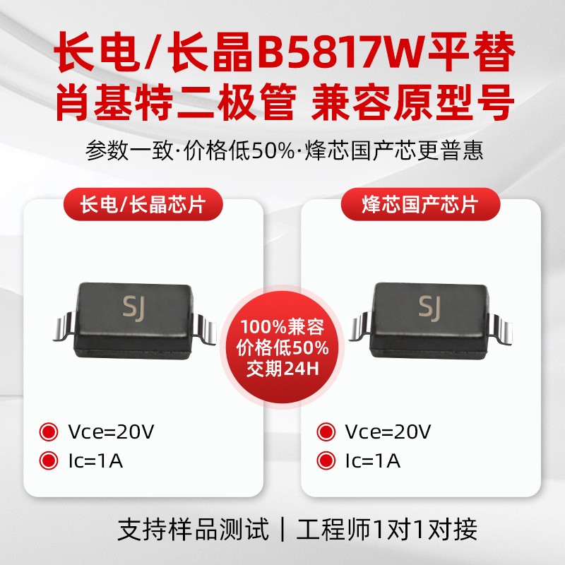 长电/长晶替代B5817W肖特基二极管20V 1A 贴片二极管品牌型号平替