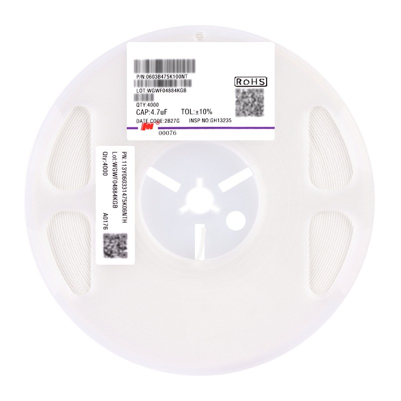 原装正品0603贴片电容4.7uF ±10% 10V X7R 0603B475K100NT 100只