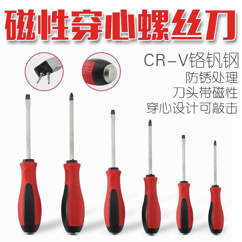 穿心柄一字十字螺丝刀起子改锥改刀可敲击带磁性螺丝刀批冲击撞批