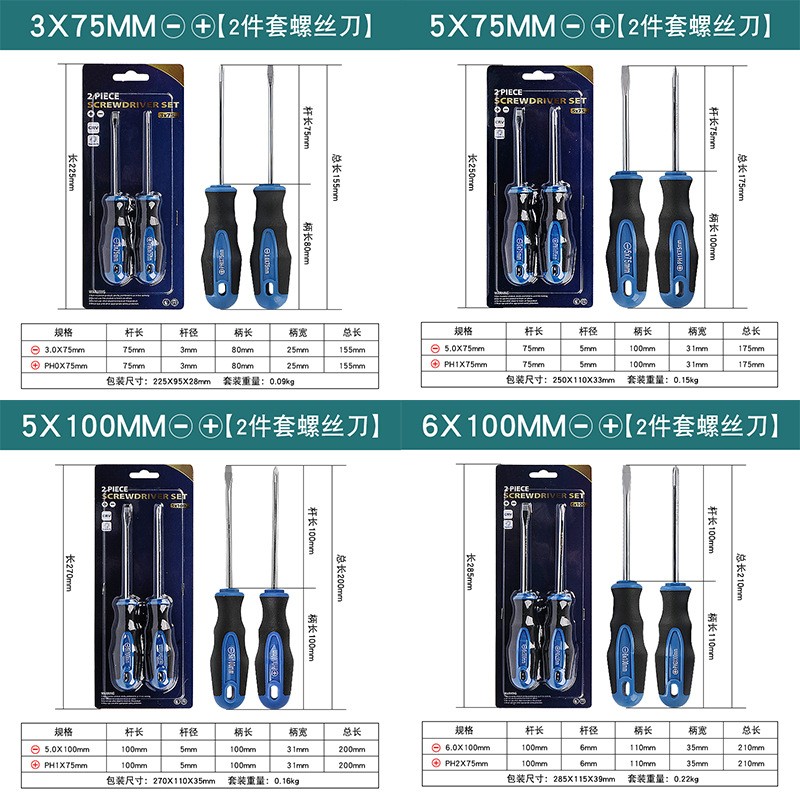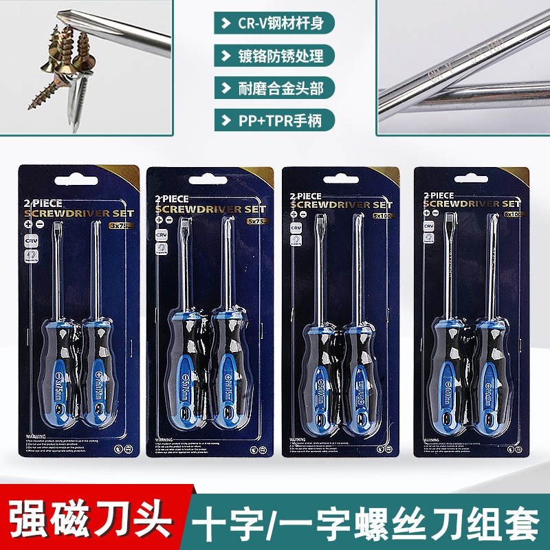 磁性加长一字十字螺丝刀起子改锥平口省力冲击批汽修机修家用工具 1套