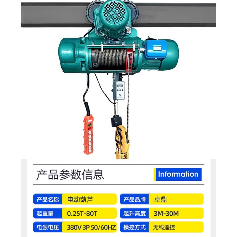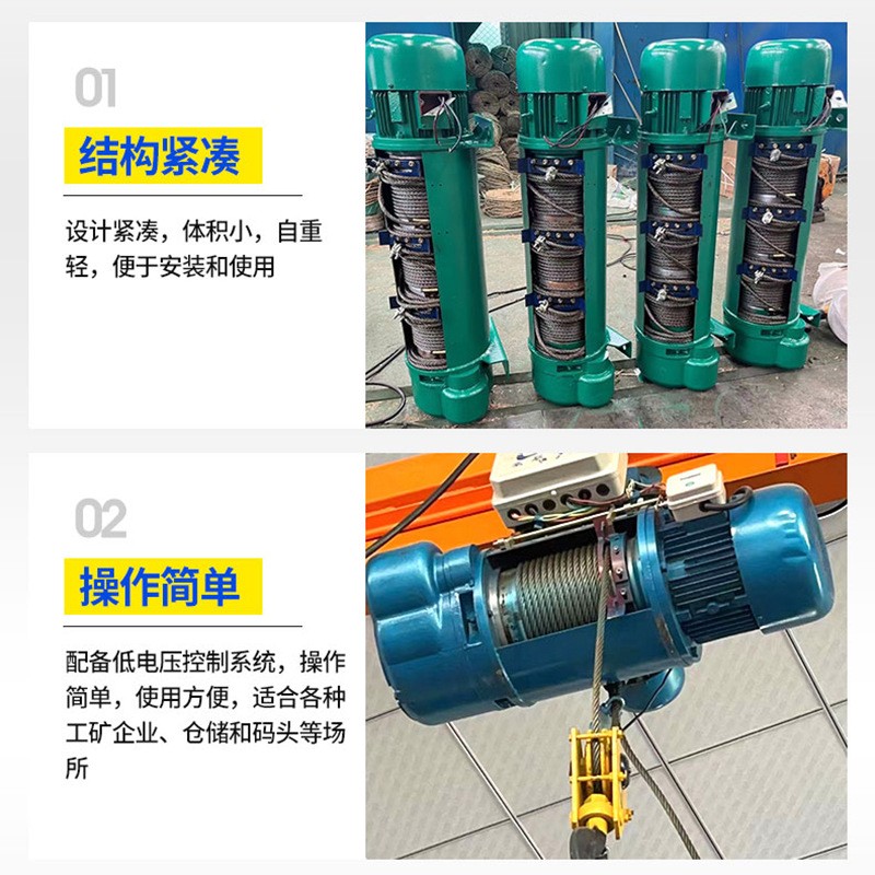 钢丝绳电动葫芦源头工厂 车间挂钩吊运货物5吨10t钢丝绳电动葫芦