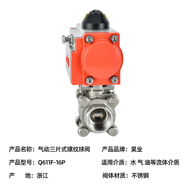 气动三片式螺纹球阀 Q611F-16P型304高平台压盖式阀门 厂家直供