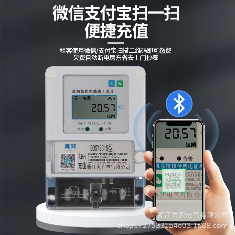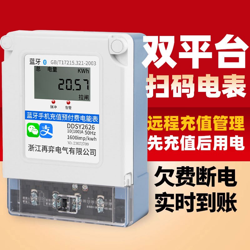 手机蓝牙扫码预付费电表出租房家用单相4G远程智能电能表