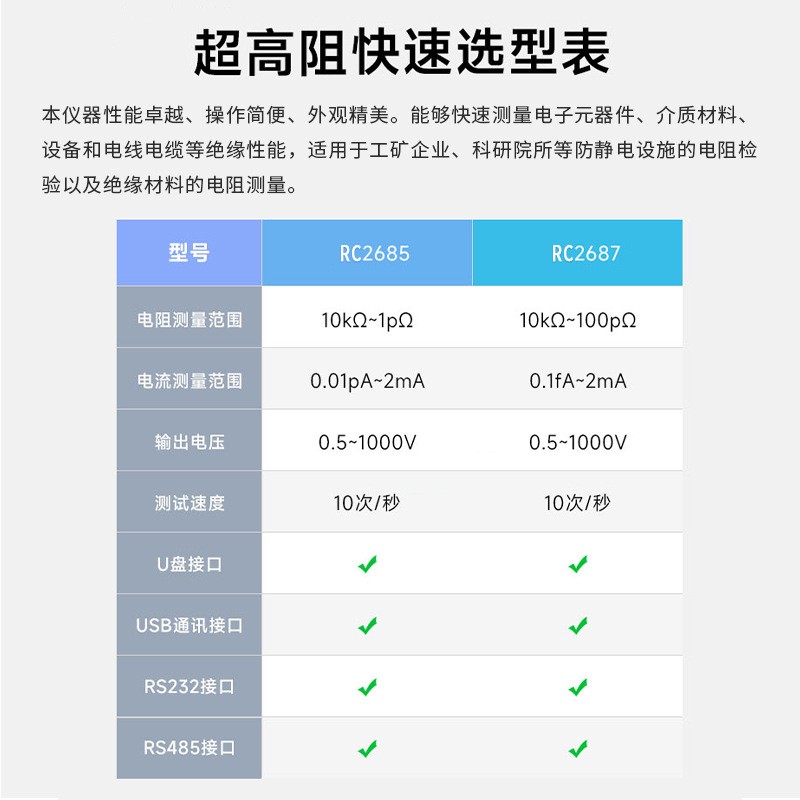 绝缘电阻测试仪RC2685/RC2687高精度台式电阻测试仪