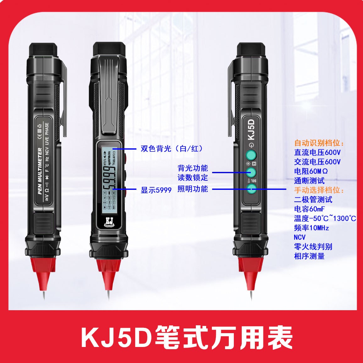 科捷KJ5D笔式万用表高精度多功能数显智能感应测电笔电工专用电压 1台