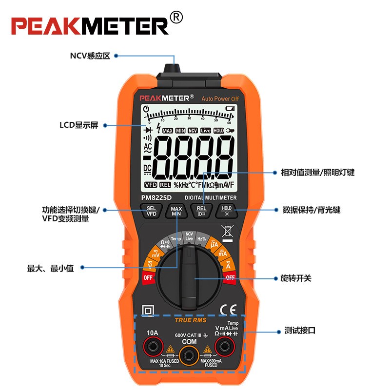 华谊PM8225D数字万用表半自动家用电工维修检测万能表高精度检测