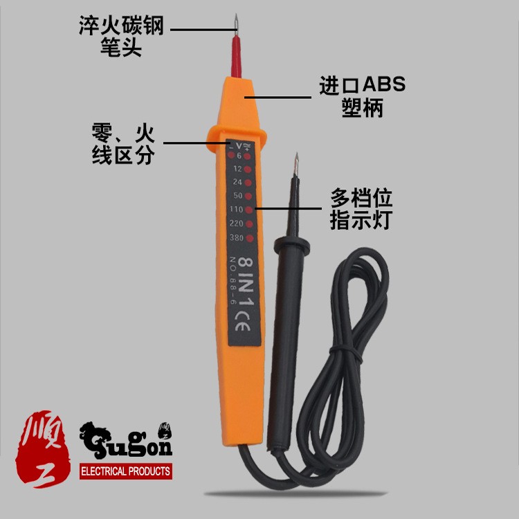 工业级专业测电笔 测直流电交流电笔 8合1验电笔6-380V 8in1电笔