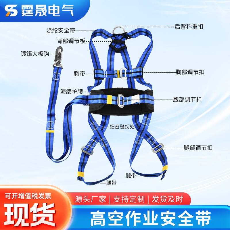 现货供应五点式全身式安全带高空作业欧式安全带单双钩缓冲保险绳