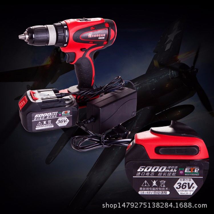 锂电充电钻 铁拳13MM大功率36V手持电动螺丝刀双速电钻 现货批发