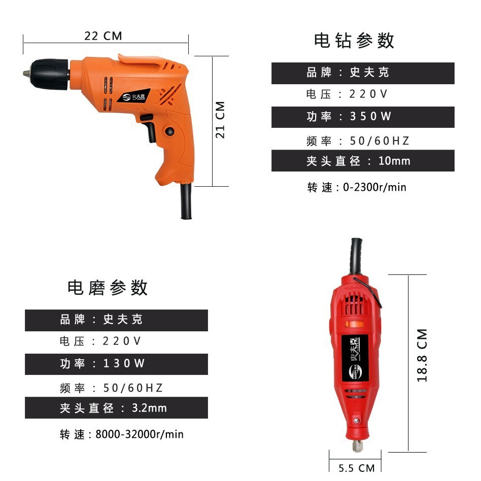 史夫克218-A电钻长直柄电磨组套 抛光电动打磨钻孔抛光工具雕刻机