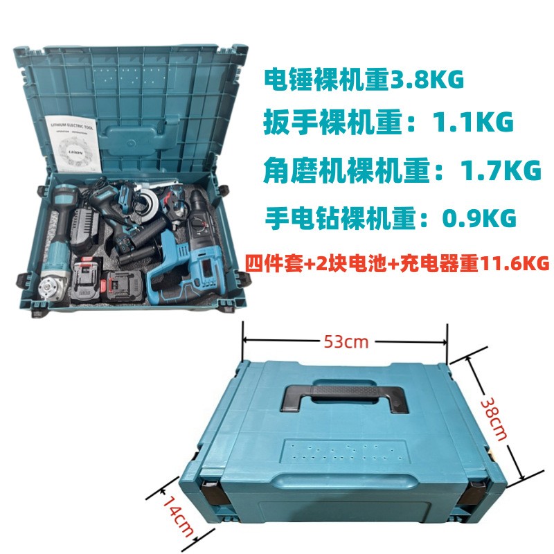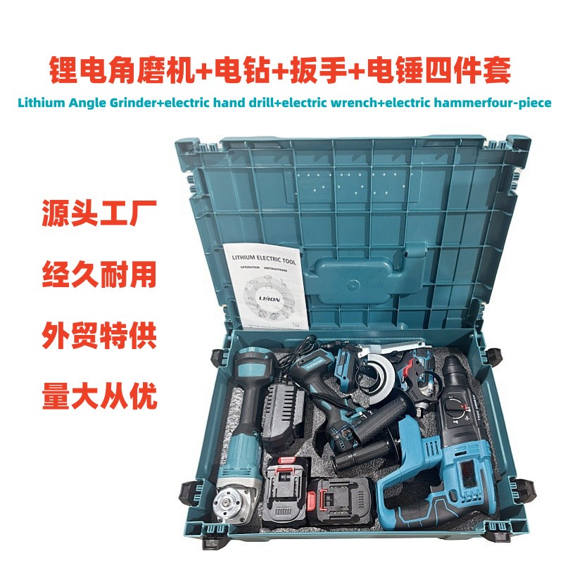 跨境专供电动工具4件套锂电电锤 电钻 角磨机 电动扳手充电式工具