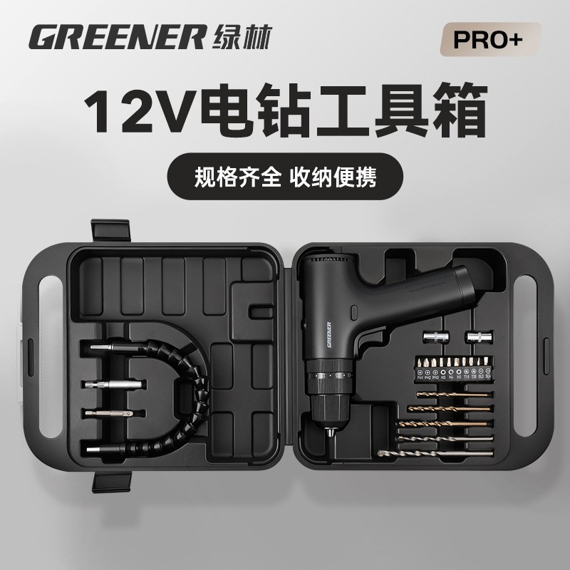绿林冲击手电钻家用小型工具手枪收纳箱锂电转充电动打墙打 孔套装