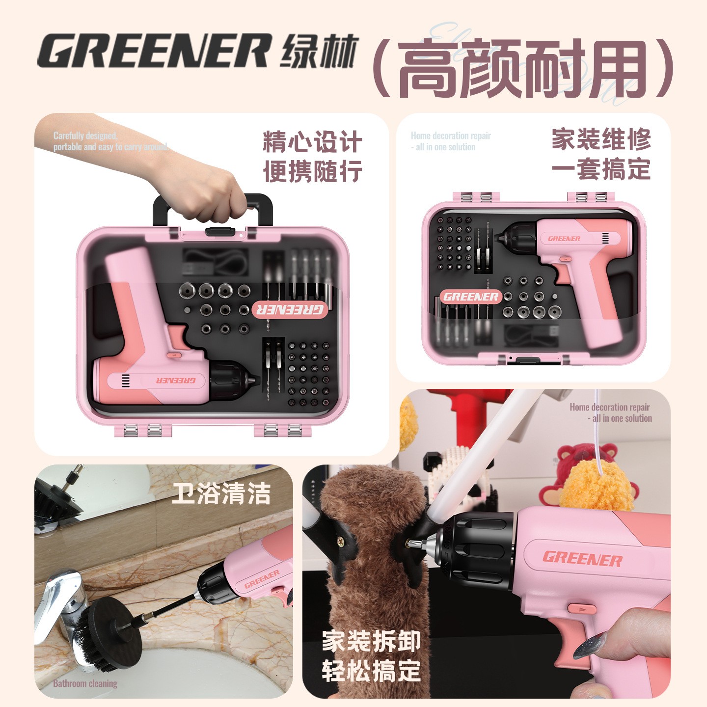绿林电钻小粉钻手电钻女生粉小型家用手枪钻锂电充电多功能 拧螺丝