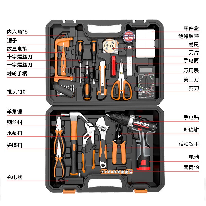 家用五金工具箱套装电动手工具套装木电工多功能专用维修工具组套