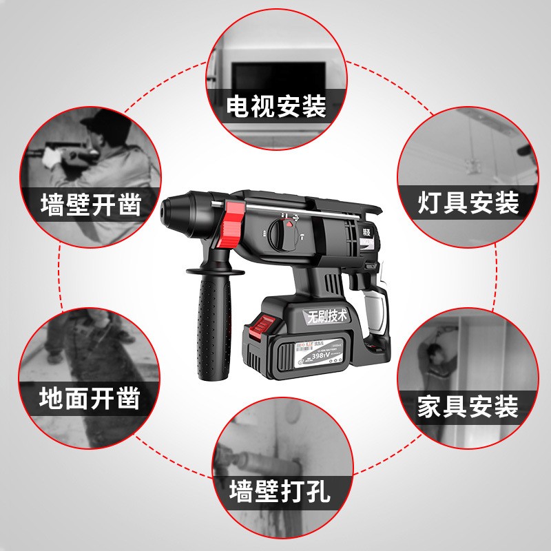 无刷充电电锤多功能锂电冲击钻工业级大功率无线电钻重型电镐三用