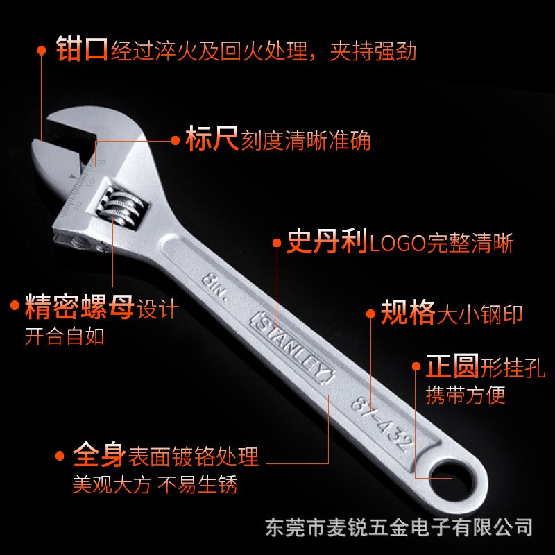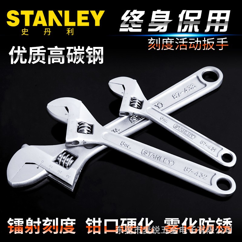史丹利家用活动扳手万能扳手4/6/8/10/12/15/18寸带刻度活络扳手