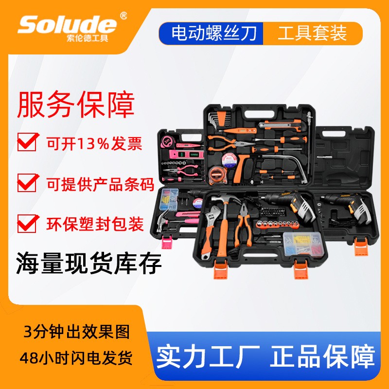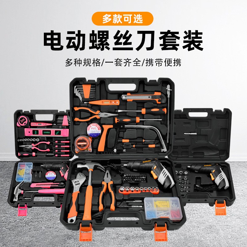 索伦德家用五金电工维修充电电动螺丝刀工具套装手动工具箱