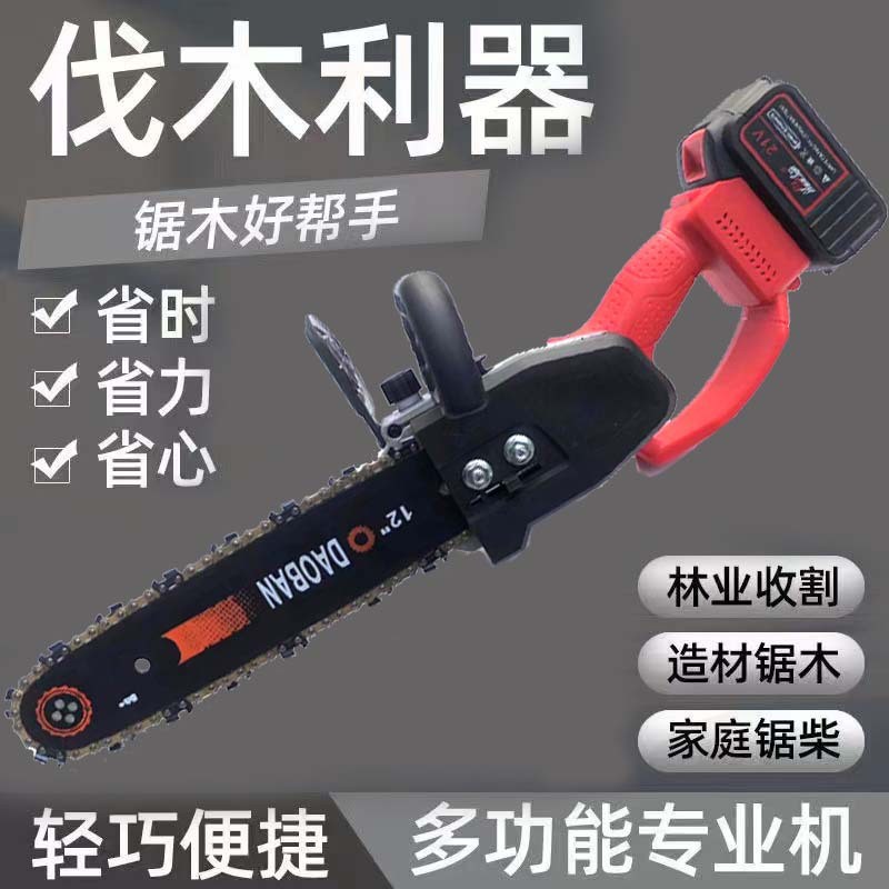 充电式电锯伐木锯家用小型12寸锂电电链锯手持户外链锯修枝电动锯
