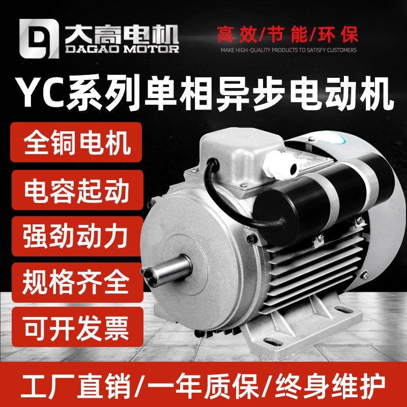 大高YC单相电容起动异步电动机220V立卧式0.12-2.2kw电机全铜线