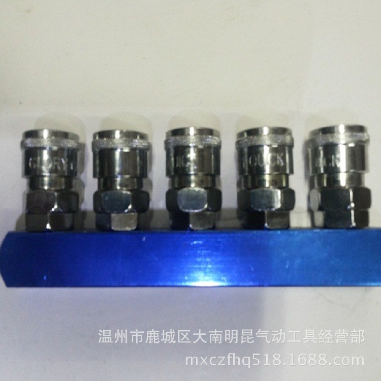GL牌气动管路接头直排5通,铝座接头可同时5个出口工作。