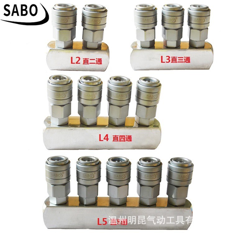 SABO萨博高档碳钢材料,自锁接头多管路接头,底座接气口为1/4也就是2分螺纹。