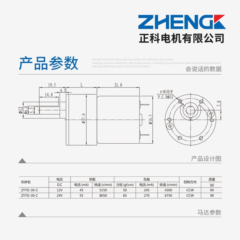 ZHENGK正科 ZGB37FDI偏心轴微型大扭矩正反转直流减速电机12V 24V
